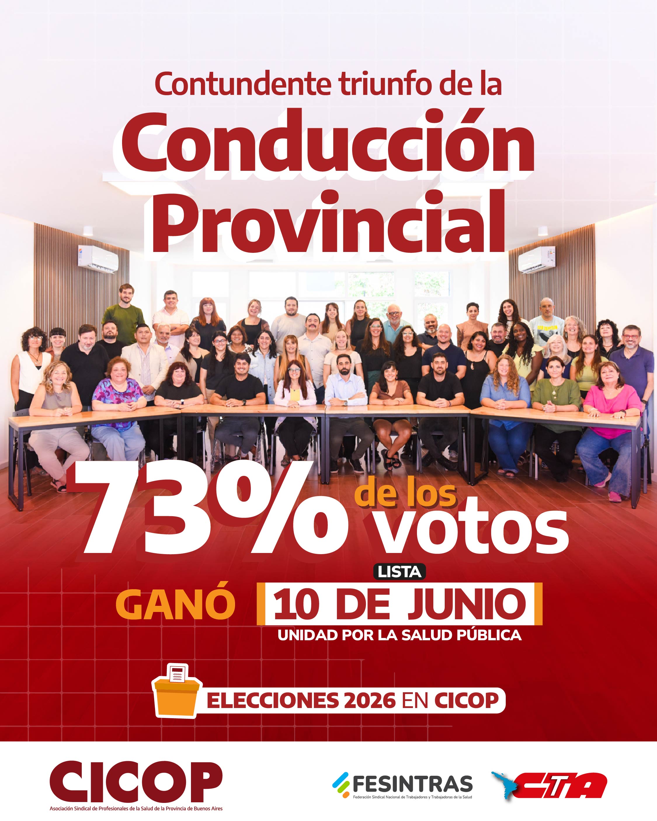 NUEVO | ESPECIAL PARA ENTREVISTAS Fuente: Prensa CICOP ELECCIONES EN CICOP: PABLO MACIEL FUE REELECTO COMO SECRETARIO GENERAL DEL SINDICATO DE PROFESIONALES DE LA SALUD PÚBLICA Con una masiva concurrencia, los días 22, 23 y 24 de abril se llevaron adelante las elecciones de la Asociación Sindical de Profesionales de la Salud de la Provincia de Buenos Aires (CICOP), donde fue reelecto como secretario general Pablo Maciel (Lista 10 de Junio) para el período 2026-2030, junto con Silvana Scali, Martín Mayo y Juan Martín Mirada Rabbione, que se impuso por el 73% de los sufragios. GACETILLA | IMÁGENES: 01 02 03 ------------------------------------------------------------------------- Pablo Maciel (Sec.Gral. reelecto de CICOP): "La Lista 10 de Junio sintetiza la experiencia de profesionales con amplia trayectoria en nuestro sindicato junto a nuevas generaciones. Reafirmamos el compromiso con la defensa de los derechos de las y los trabajadores de la salud y de la salud pública, hoy amenazada por un gobierno nacional cruel y ajustador. Como parte de nuestra agenda sindical, avanzamos con la puesta en marcha de la Mesa Técnica para la recategorización del salario básico del sector. Se trata de un paso histórico que busca jerarquizar los ingresos y adecuarlos a las responsabilidades que asumimos, con el objetivo de revertir los altos índices de pluriempleo que persisten en el sistema público". ------------------------------------------------------------------------- CONTACTOS PARA NOTAS CICOP: -Pablo Maciel, 221 615-2772 (Secretario General) -Silvana Scali, 112-338-9026 (Secretaria General Adjunta 1°) -Martín Mayo Segurado, 2215 72-7348 (Secretario General Adjunto 2°) -Juan Martín Mirada Rabbione, 2214 30-9038 (Secretario Gremial) -Eliana Comas, 221 455-1397 (Prensa) -------------------------------------------------------------------------