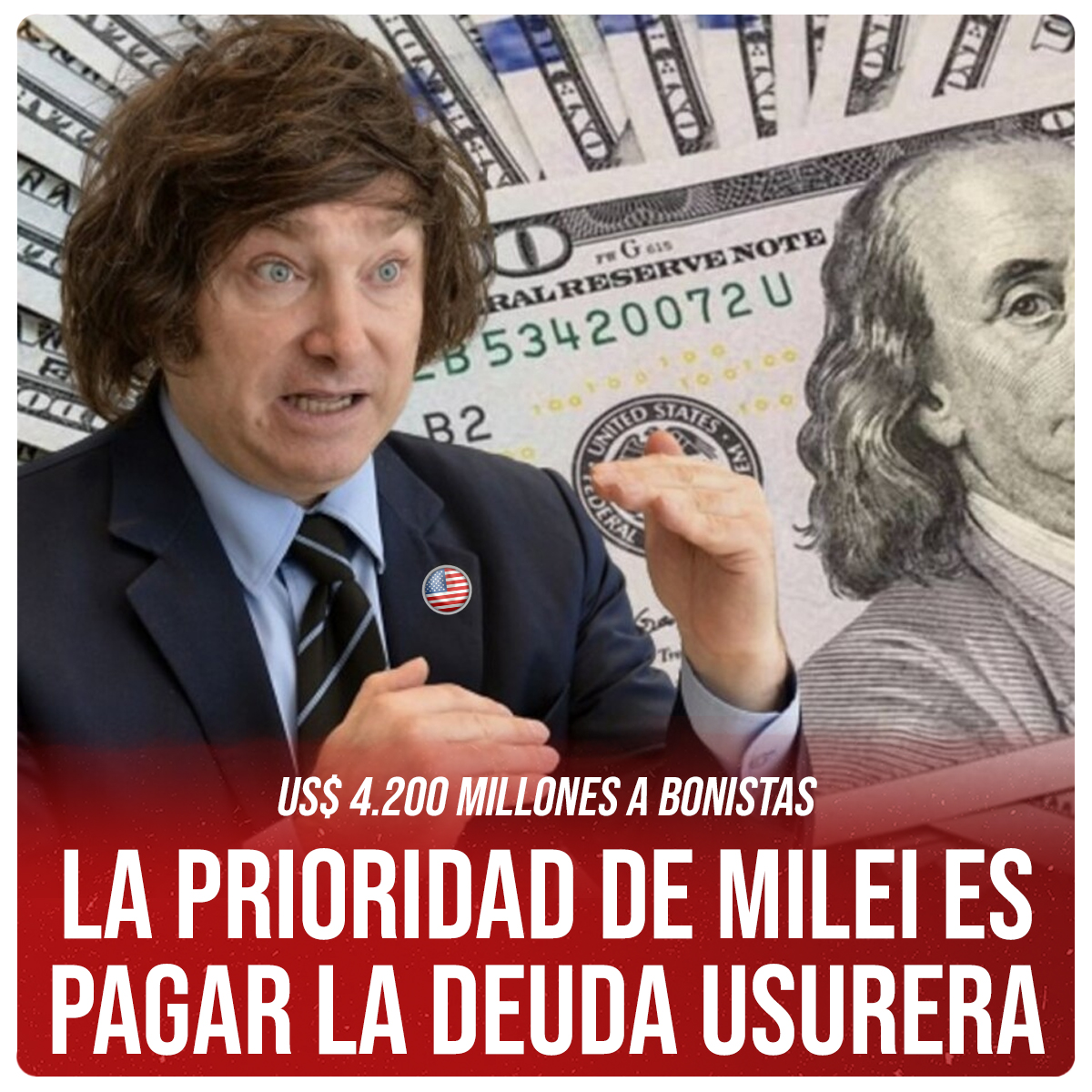 DIFUSIÓN ESPECIAL DE FIN DE SEMANA ESPECIAL PARA ENTREVISTAS Fuente: Prensa Izquierda SocialistaJUAN CARLOS GIORDANO: "LA PRIORIDAD DE MILEI ES PAGAR LA DEUDA USURERA" El diputado nacional de Izquierda Socialista en el FIT Unidad, Juan Carlos Giordano, se refirió al pago de US$ 4.200 millones de deuda externa que pago este viernes el gobierno de Javier Mileri. GACETILLA | IMAGEN------------------------------------------------------------------------- Juan Carlos Giordano: "Está claro que para este gobierno ultraderechista y entregador la prioridad pasa por cumplir con la usura internacional. En un nuevo acto de piratería financiera acaba de destinar una cifra millonaria con plata que les roba a las y los jubilados y recorta de los presupuestos de salud, educación, universidades, Manejo del Fuego y protección de bosques nativos..." ------------------------------------------------------------------------- CONTACTOS P/NOTAS: -Juan Carlos Giordano, 113-119-3003 -Prensa de Izquierda Socialista, 116-054-0129 -------------------------------------------------------------------------
