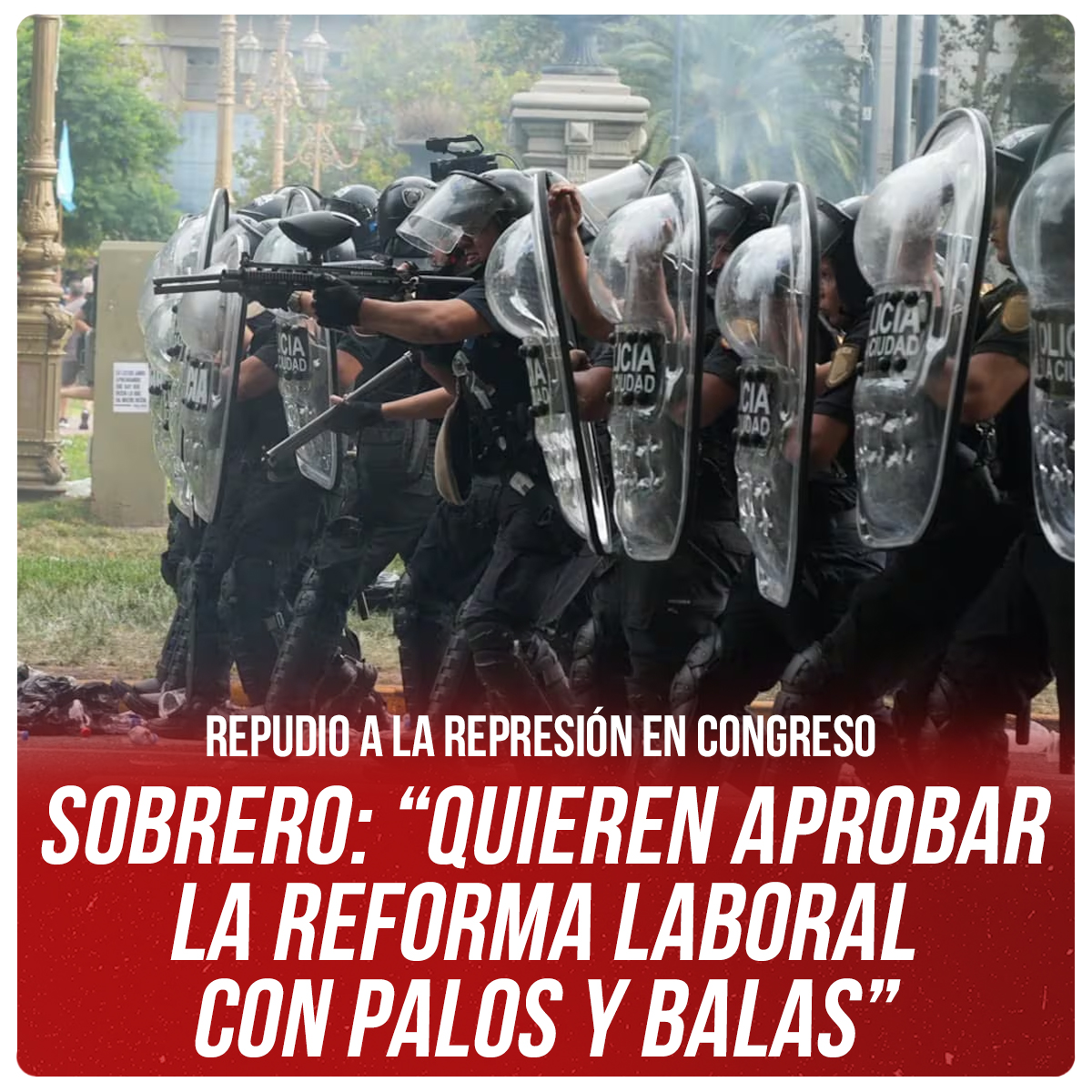 Ruben "Pollo" Sobrero, secretario general de la Unión Ferroviaria Oeste y dirigente nacional de la corriente sindical "A Luchar" y de Izquierda Socialista/FIT Unidad, manifestó su repudio por la represión en Congreso, a los manifestantes que protestaban contra la REFORMA LABORAL. GACETILLA | IMAGEN----------------------------------------------------------------------- Ruben "Pollo" Sobrero (secretario general de la UF oeste y el principal dirigente del Sindicalismo Combativo): "Evidentemente el gobierno tenía planificado la represión para liberar la Plaza Congreso y así poder votar una repudiable reforma laboral esclavista. Milei, Bullrich y Santilli hacen campaña contra ‘los violentos', cuando la violencia viene de un Senado que se prepara para dar media sanción a una ley nefasta contra el pueblo trabajador. Hay filmaciones de la actuación de cinco infiltrados haciendo bombas molotov, que nada tenían que ver con la movilización, a los cuales la policía dejó correr para luego justificar la represión, la cual que se extendió durante horas después de desalojada la plaza deteniendo impunemente a cualquiera que anduviera por la zona..." ----------------------------------------------------------------------- CONTACTOS P/NOTAS: -Rubén "Pollo" Sobrero, 116-422-666 -Prensa de Izquierda Socialista, 116-054-0129 --------------------------------------------------------------------------