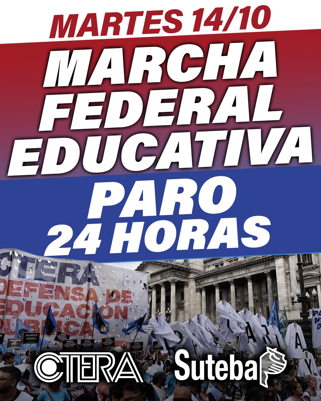 Martes 20 Mayo 202500:00 | PROVINCIA DE BUENOS AIRES Fuente: prensa Partido de los Trabajadores Socialistas (PTS) HABRÁ PARO DOCENTE BONAERENSE IMPULSADO POR LA FEB Y SUTEBA MULTICOLOR, A PESAR DE LA CONCILIACIÓN OBLIGATORIA La Federación de Educadores Bonaerenses (FEB) y el SUTEBA Multicolor (Línea interna opositora a la conducción del SUTEBA), ratificaron el paro en las escuelas de la provincia, en rechazo al acuerdo entre el gobierno y SUTEBA. GACETILLA ------------------------------------------------------------------------- “Durante el día lunes el gobierno de la Provincia intentó por varios medios amedrentar y desalentar el paro que sin embargo fue creciendo en las escuelas. Con un comunicado que amenaza con descuentos, una conferencia de prensa de los funcionarios y a última hora dictando la conciliación obligatoria. Sin embargo la fuerza que viene de abajo se sostuvo y la conducción de FEB desconocen la conciliación obligatoria y sostiene el paro. Desde la Multicolor llamamos a sostener masivamente y rechazar los aprietes del gobierno de la provincia...” ------------------------------------------------------------------------- CONTACTO P/NOTAS: -Paula Akerfeld, 114-471-6898 -------------------------------------------------------------------------