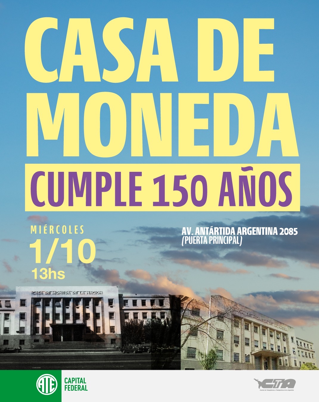 Miércoles 22 Octubre 202514:00 | ARGENTINA Fuente: Prensa SUTNA PARO DE TRABAJADORES DEL NEUMÁTICO Trabajadores del neumático nucleados en el Sindicato Único de Trabajadores del Neumático (SUTNA) realizarán un paro de 24 horas para reclamar paritarias y en rechazo a la rebaja salarial. -------------------------------------------------------------------------- Alejandro Crespo (Sec. General del SUTNA): “Utilizan la situación nacional para intentar imponer una rebaja salarial", amparadas en una política gubernamental que golpea a los trabajadores y facilita las importaciones. El No aceptaremos ninguna reducción de salarios ni flexibilización de las condiciones laborales..." -------------------------------------------------------------------------- Lugar: Plantas de Pirelli, Bridgestone y Fate --------------------------------------------------------------------------