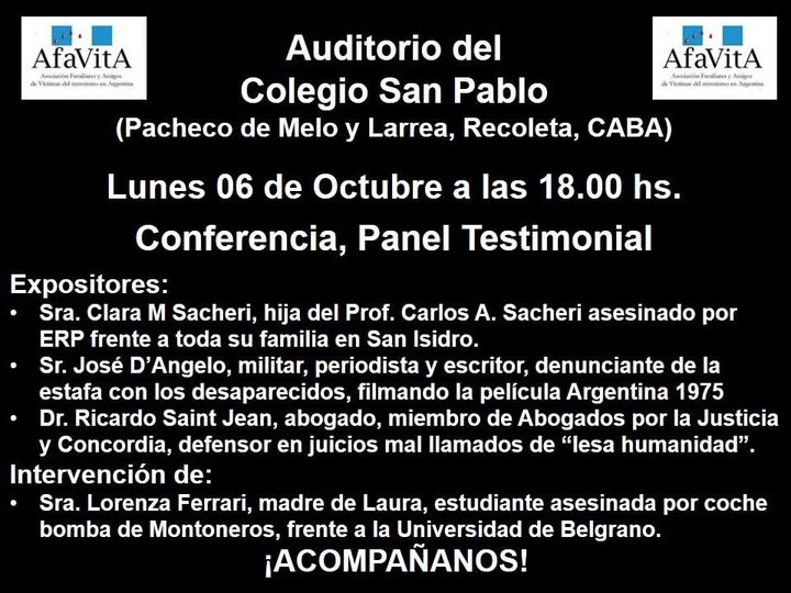 Viernes 24 Octubre 2025 11:30 | MAR DEL PLATA Fuente: Prensa Secretaría de DDHH de la Pcia. de Bs.As. JUICIO DE LESA HUMANIDAD SUBZONA 15 III El Tribunal Oral Federal de Mar del Plata, integrado por Nicolás Toselli, Fernando Minguillón y Martín Poderti continuará con el juicio por los delitos de lesa humanidad Subzona 15 III. Los 20 acusados serán juzgados por homicidios, agresiones contra la libertad e integridad sexual, privación ilegal de libertad, tormentos y allanamientos ilegales, todos ellos agravados, que se cometieron en el ámbito de la Subzona militar 15, bajo el comando de la Agrupación de Artillería de Defensa Aérea 601. ----------------------------------------------------------------------- Lugar: Av. Pedro Luro 2455 | TRANSMISIÓN CON LINE ----------------------------------------------------------------------- CONTACTO: -Prensa Secretaría de DDHH de la Pcia de Bs.As., (0221) 489-3960 -----------------------------------------------------------------------