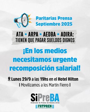 Miércoles 21 Mayo 202500:00 | PROVINCIA DE CÓRDOBA Fuente: Prensa AGEPJ PARO PROVINCIAL POR 72 HORAS DE JUDICIALES DE CÓRDOBA Judiciales de Córdoba realizan un paro provincial de 72 horas (21, 22, 23/MAYO) ante la falta de respuesta de recomposición salarial y la negativa de abrir una mesa de diálogo por parte del Tribunal Superior de Justicia. La medida prevé un abandono de tareas en todas las sedes tribunalicias y unidades judiciales de la capital e interior provincial. GACETILLA | IMAGEN ------------------------------------------------------------------------- Federico Cortelletti (Sec. General de AGEPJ): “Es fundamental que el Tribunal Superior de Justicia convoque a una mesa de diálogo a fines de encontrar vías de resolución a la difícil situación económica que vivimos las y los empleados judiciales que hemos padecido una perdida real de nuestros salarios superior al 40%. Creemos que la reestructuración de la planta es un paso importante pero ahora necesitamos avanzar con la equiparación porque tenemos compañeras y compañeros de las primeras categorías de la carrera con ingresos por debajo de la línea de pobreza...” ------------------------------------------------------------------------- CONTACTOS P/NOTAS: -Federico Cortelletti, (351) 512-2984 (Sec. General de AGEPJ) -Agostina Noccioli, (351) 858-8004 (Sec. General Adjunta) -------------------------------------------------------------------------